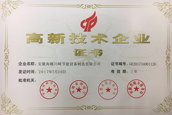海川節能榮獲高新技術企業認定證書