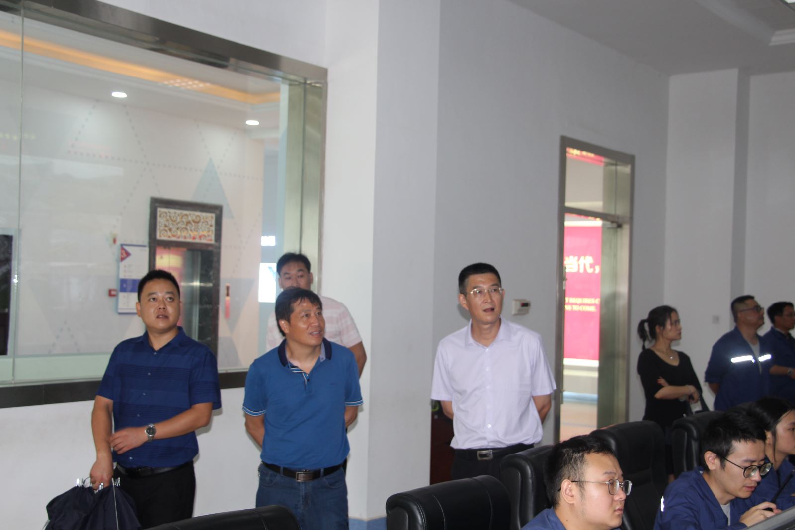 ? ? 隨后,在公司總經理陳遠志陪同下,彭副主席一行先后來到六樓行車操作室、三樓中控室,觀看垃圾打堆、入爐操作,查看生產運行和指標控制情況。