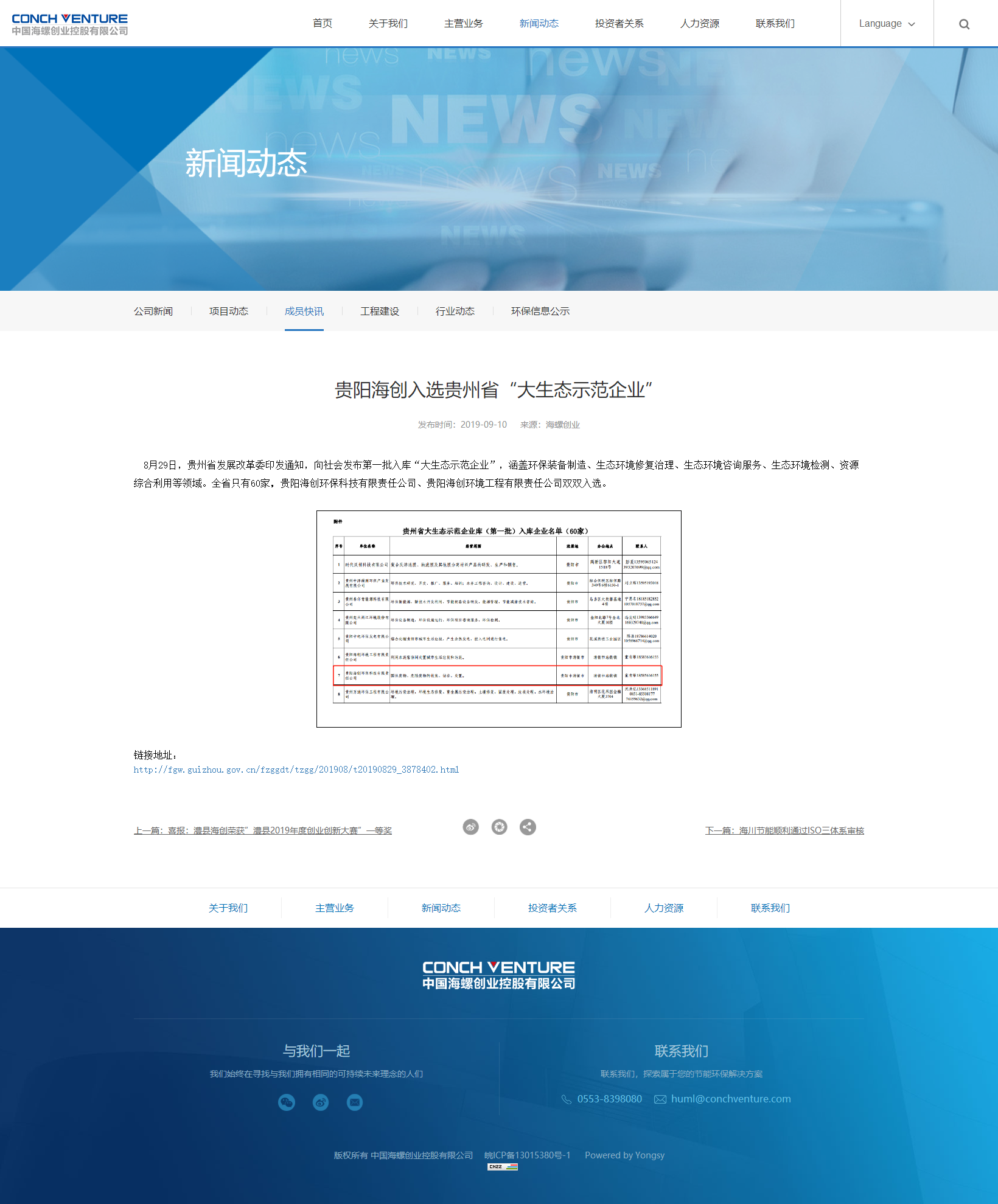 貴陽海創入選貴州省“大生態示范企業”-成員快訊-中國海螺創業控股有限公司.png