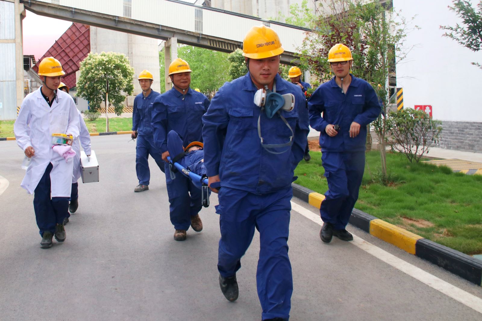 ? ? 6月24日下午,公司組織開(kāi)展了高溫中暑應(yīng)急演練。15:00,總指揮接到報(bào)告,卸料大廳有人昏倒在地,應(yīng)急救援小組立即啟動(dòng)預(yù)案,根據(jù)患者情況,迅速作出判斷,轉(zhuǎn)移至安全地帶進(jìn)行救治。
