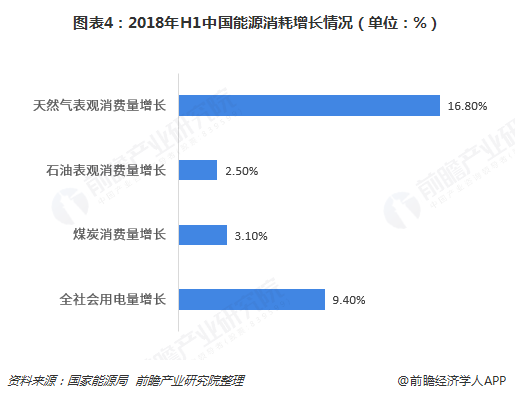 ? ? 2018年上半年,全社會用電量32291億千瓦時,同比增長9.4%,增速比2017年同期提高3.1個百分點,創6年來新高。其中,煤炭消費穩中有升,全國煤炭消費同比增長3.1%左右;石油消費保持平穩,表觀消費量同比增長2.5%左右;天然氣消費大幅增長,表觀消費量同比增長16.8%左右;電力消費快速增長。