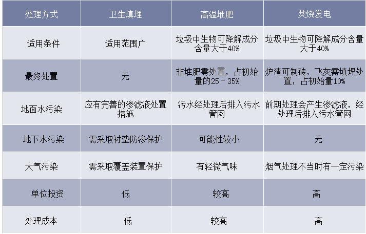 ? ? 三種垃圾無害化處理方式對比