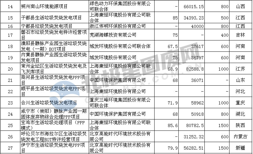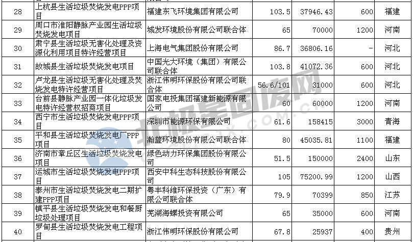 從69個中標的垃圾發電項目來看,湖南、河北、河南三個省份分別累計釋放11、9、8個項目,位居全國前三,湖北省中標5個垃圾焚燒發電項目位居第四位,華北、華中地區市場爆發,同時內蒙古、新疆等地也有項目釋放,青海西寧市垃圾焚燒發項目是青海省首個在建的大規模垃圾焚燒發電項目,市場進一步向西擴張。
