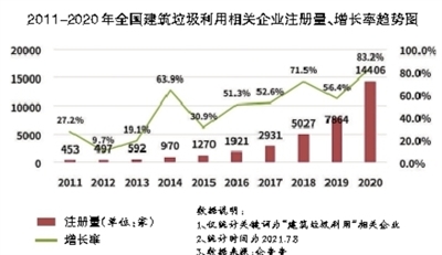建筑垃圾利用產業:現存企業4.8萬家,近兩年增速明顯