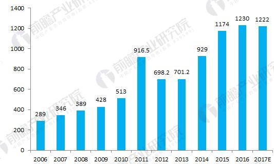 圖表5:2006-2017年中國(guó)危險(xiǎn)廢棄物處置量情況(單位:萬(wàn)噸)