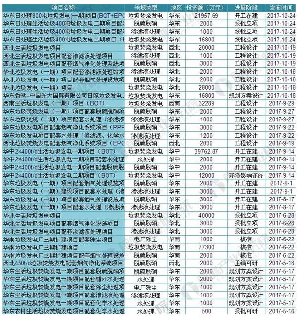 附:2017年1-10月中國垃圾發(fā)電建設項目匯總